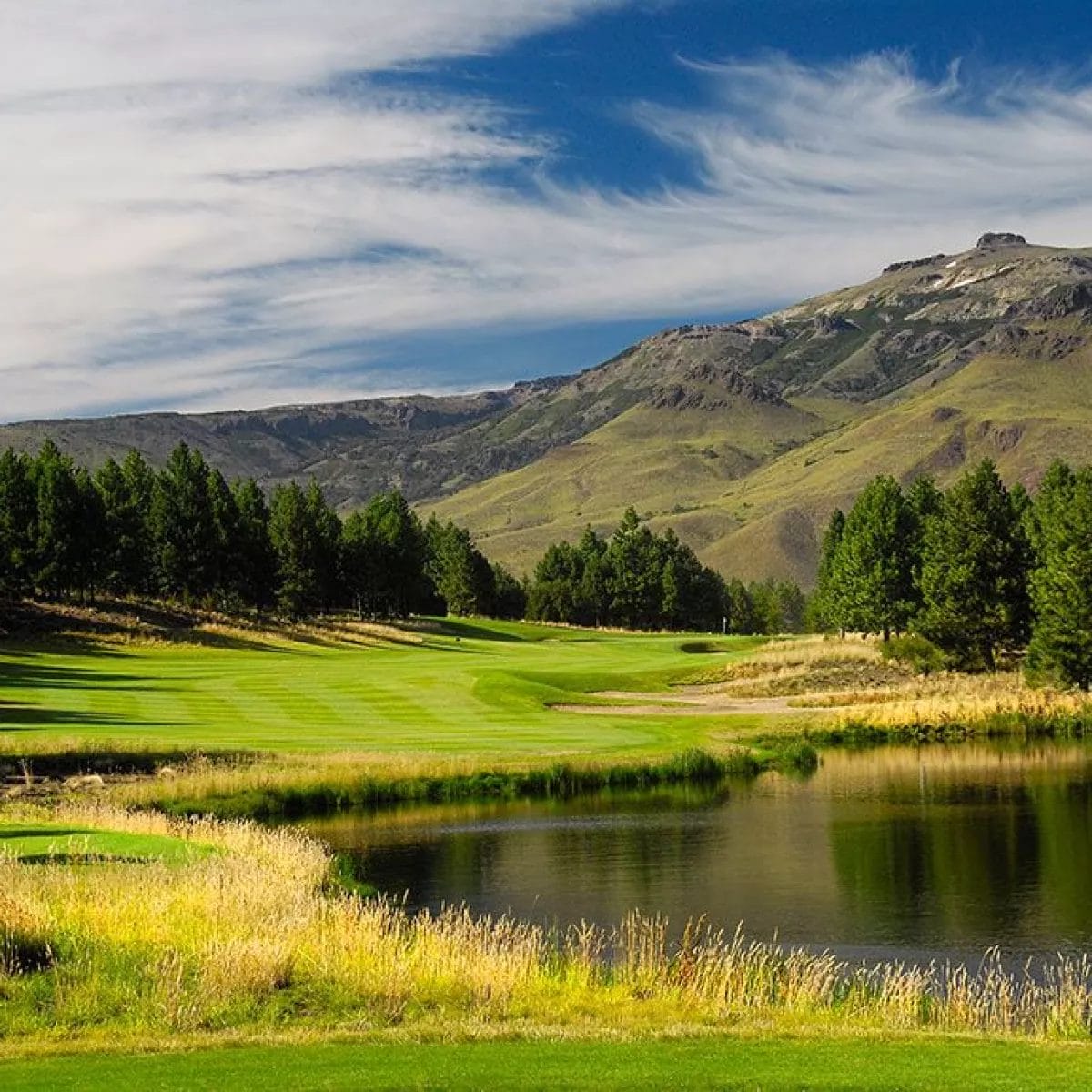 Morning golf at Chapelco Golf Club, a Jack Nicklaus design framed by the Andes. Consistently ranked among ArgentinaтАЩs top courses.